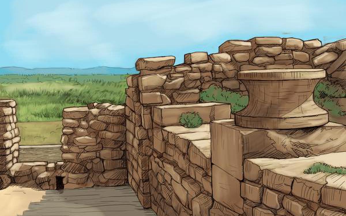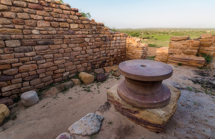 The fortified site is divided in to three different parts The citadel, a middle town and a lower town with walls made of sandstone or limestone. Where other Indus sites found standardised Mud Bricks.
